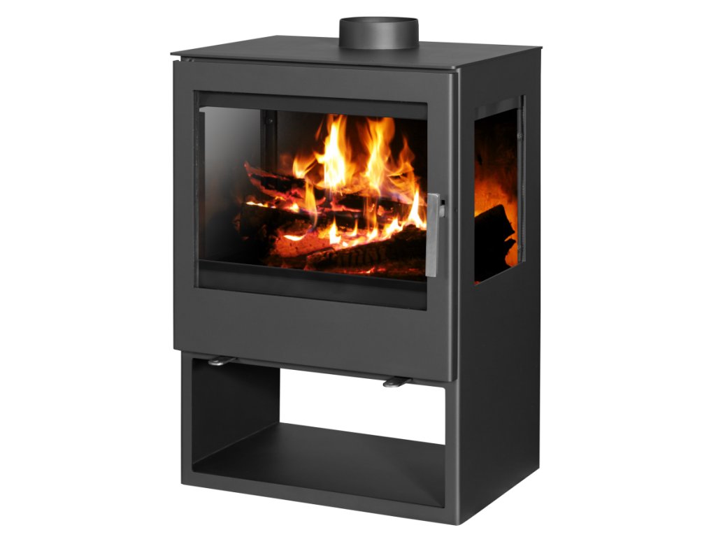 Kamna jsou z kvalitního ocelového plechu o síle 3-4 mm. Jsou lakována speciálním lakem, který odolává vysokým teplotám. Kovové kličky a regulátory jsou poniklované. Tím se snižuje opotřebování povrchu na minimum. Přední dvířka jsou opatřena tepelně odolným keramickým sklem, které umožňuje dokonalý výhled na plameny. Ve spodní části kamen najdete praktický prostor pro skladování dřeva.
