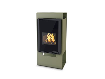 Luxusní krbová kamna Senai s výkonem 9 kW v olivové barvě. Vytápěcí schopnost...