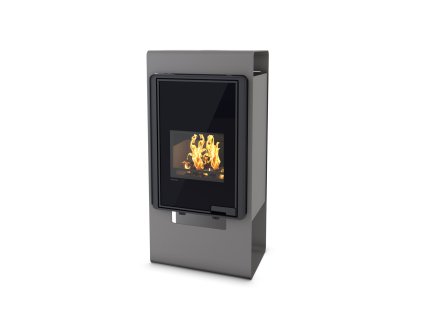 Luxusní krbová kamna Senai s výkonem 9 kW v šedé barvě. Vytápěcí schopnost kamen...