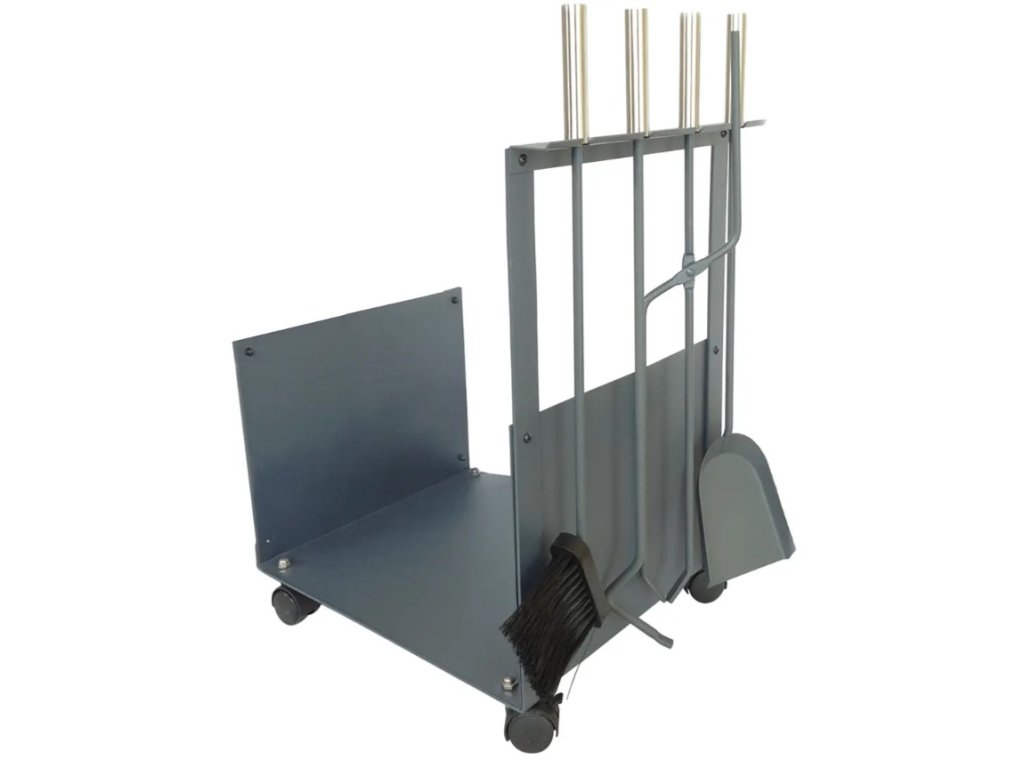 Ocelový koš na dřevo bude praktickým pomocníkem pro uskladnění dřeva u vašeho krbu či kamen. Zaručeně využijete i praktické nářadí, které je součástí koše. Nářadí se skládá z pohrabáče pro manipulaci se žhavým popelem a pro práci s otevřeným ohněm, smetáčku a lopatky na smetení popela či kousků dřeva a kleští.