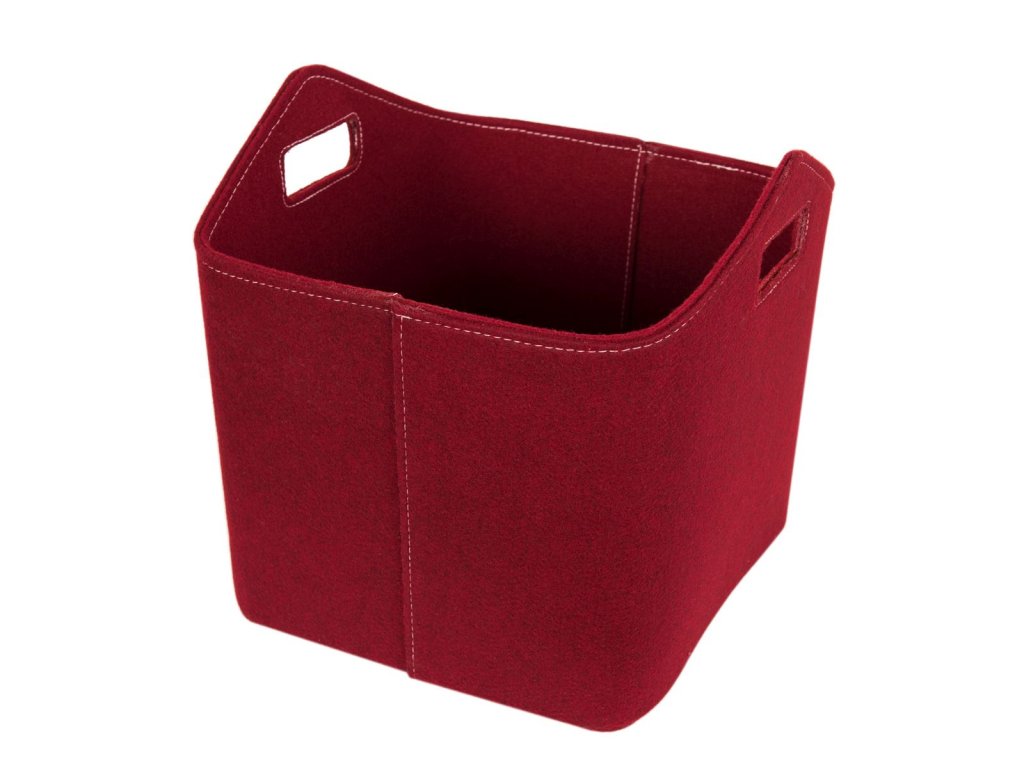 Plstěný koš na dřevo v červené barvě bude praktickým pomocníkem pro přenos a uskladnění dřeva u vašeho krbu nebo kamen.
