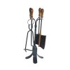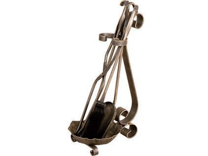 Praktická sada krbového nářadí. Sada obsahuje lopatku, pohrabáč, kleště a košťátko.