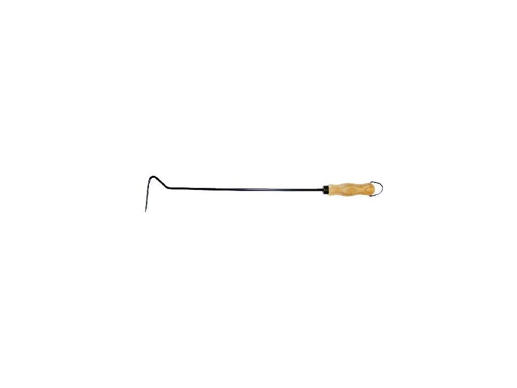 Černěný krbový pohrabáč s dřevěnou rukojetí je neocenitelným pomocníkem při manipulaci se žhavým popelem a při úpravě paliva v topeništi.