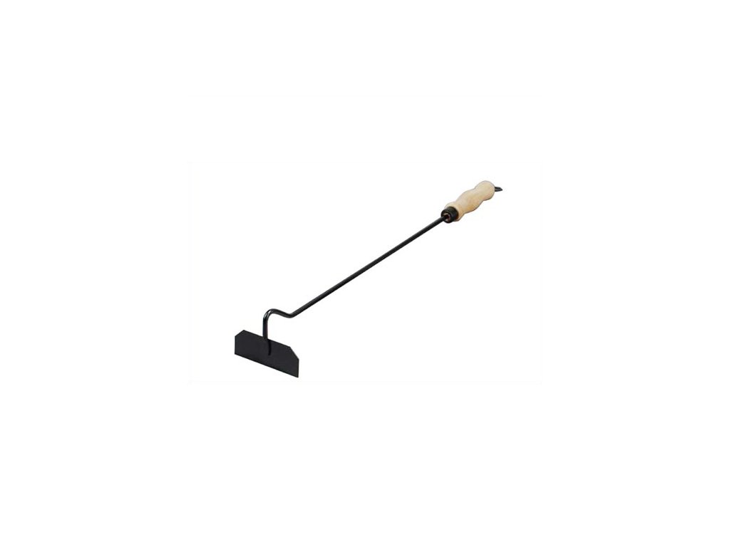 Černěný krbový vyhrabávač s dřevěnou rukojetí je neocenitelným pomocníkem při manipulaci se žhavým popelem a při úpravě paliva v topeništi.