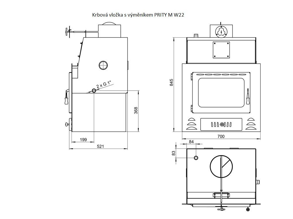 Krbová vložka s teplovodním výměníkem PRITY M W22