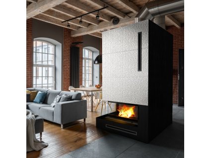 - Kachlová kamna s výměníkem - kombinace kachlových kamen i s připojeným teplovodním výměníkem