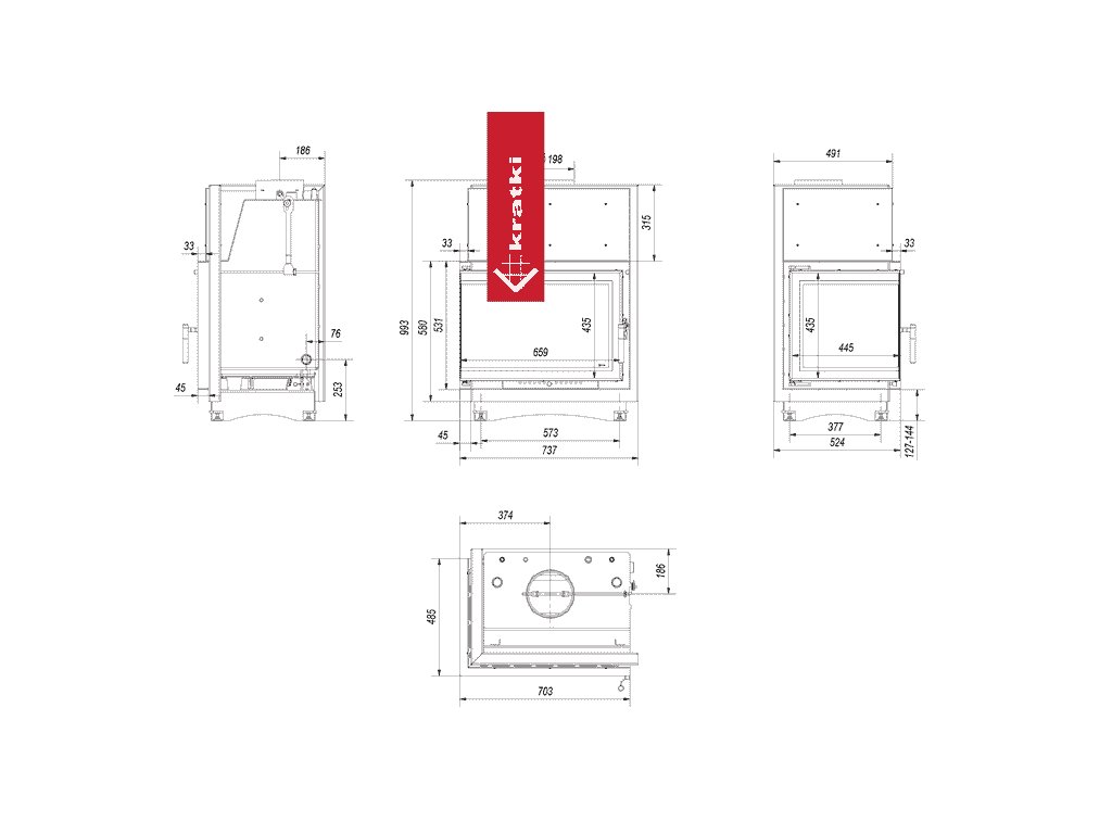 | Palivo: | dřevěné brikety, kusové dřevo |