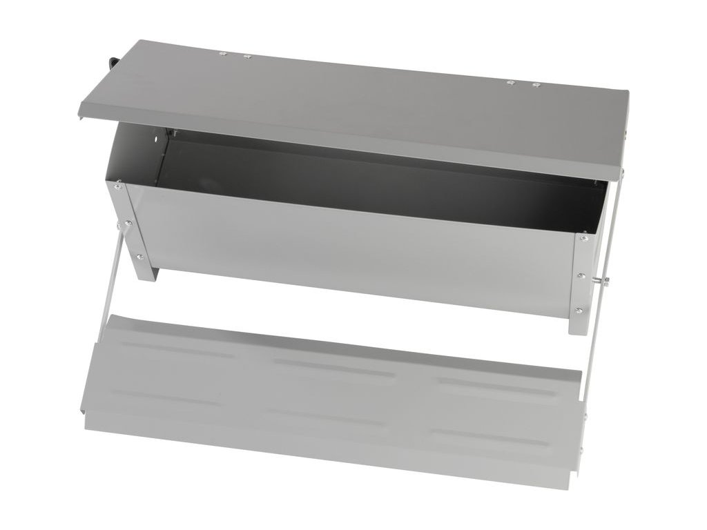 Robustní plechové pozinkované krmítko určené pro drůbež, které umožňuje připojení dvou...