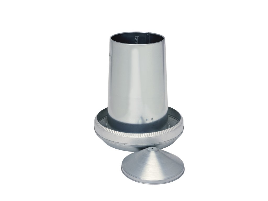 Automatické krmítko s kapacitou 70 kg je ideální pro skupiny až 130 kuřat. Díky tubusovému zásobníku krmivo automaticky doplňuje do misky, což minimalizuje plýtvání a znečištění. Možnost zavěšení zajišťuje lepší hygienu, zatímco odolný pozinkovaný povrch umožňuje snadnou údržbu a dlouhou životnost. Rozměry krmítka jsou Ø 590 x V 750 mm, s miskou vysokou 150 mm. Lze dokoupit příslušenství: ochranný kruh proti dešti a nožičky ke krmítku. Díky hladkému povrchu je čištění rychlé a bezproblémové.
