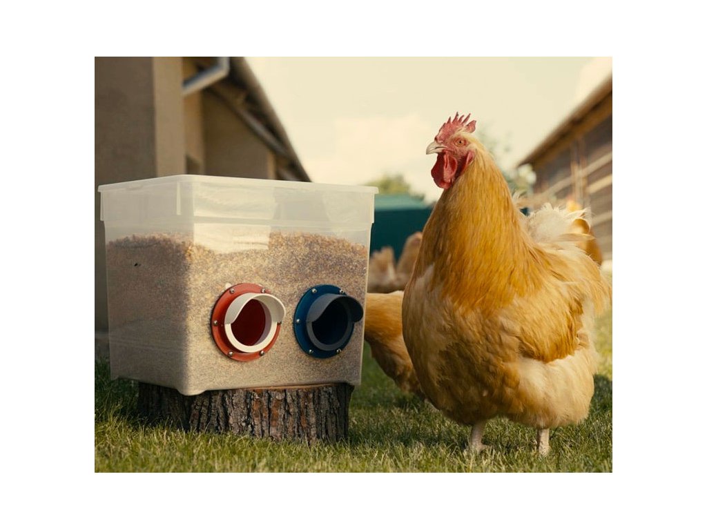 - Ochrana proti dešti: Součástí sady je praktický kryt, který chrání krmivo před vlhkostí a nepřízní počasí.