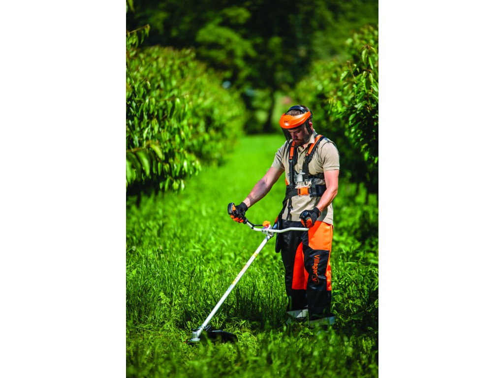 Veškeré ovládací prvky křovinořezu jsou snadno dostupné díky umístění na hliníkové obouruční rukojeti ve formě řídítek, kterou lze univerzálně nastavovat, díky čemuž má křovinořez velmi pohodlné a přesné vedení. Křovinořez má pevné madlo z hliníkové trubky, které dokáže odolat vysokému zatížení. Profesionální zádový popruh s perfektním rozložením hmotnosti mezi rameny a hrudníkem a podložka (plovoucí kyčel) s rychloupínacím mechanismem zajišťuje příjemnou manipulaci.