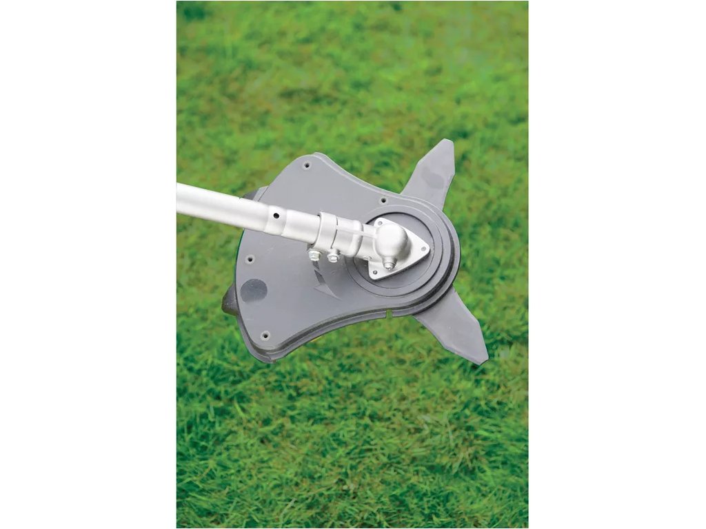 Kotouč Tri‐Arc+™ z tvrzeného kovu zajistí výkonné a přesné sečení. Poloautomatická strunová hlava s úderovým mechanismem, který slouží pro odvíjení struny, je ideálním nástrojem při sekání a dosekávání trávy kolem pevných překážek, např. obrubníků, dlažby, zahradních květináčů atd. Struna totiž poseče trávu na správnou výšku a poté se díky své pružnosti dokáže překážce přizpůsobit a nepoškodit ji. Záběr sečení ocelovým nožem je 260 mm, strunou 380 mm. Hlava je vybavena strunou o průměru 1,5 mm.