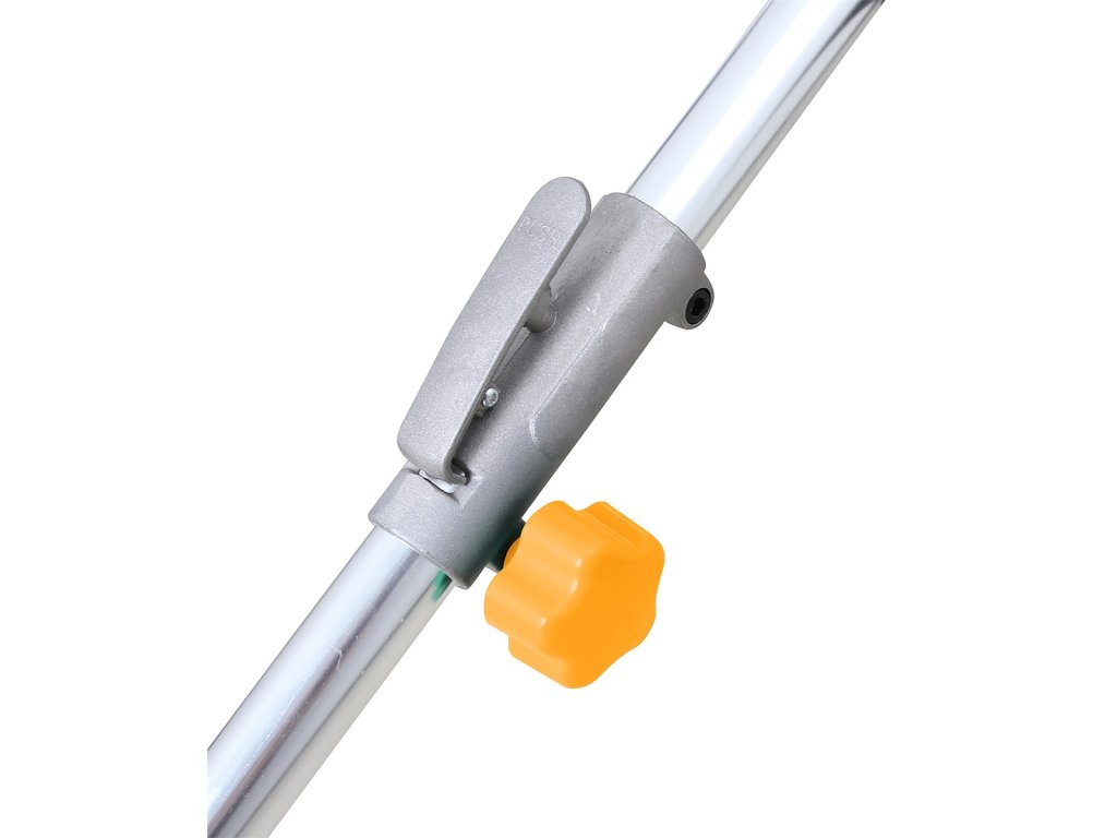 Materiál vodící tyče i dělená hřídel jsou vyrobeny z kvalitní slitiny kovů. Díky dělené hřídeli lze rozložit křovinořez na dvě poloviny – úspora místa při skladování a snadnější transport v automobilu. Pohodlná rukojeť dovoluje více možností uchopení stroje pro práci v různých polohách a s různými nástavci. Rukojeť lze nastavit bez použití nářadí. Komfortní dvojitý popruh na rameno umožňuje pohodlné nastavení podle výšky uživatele.