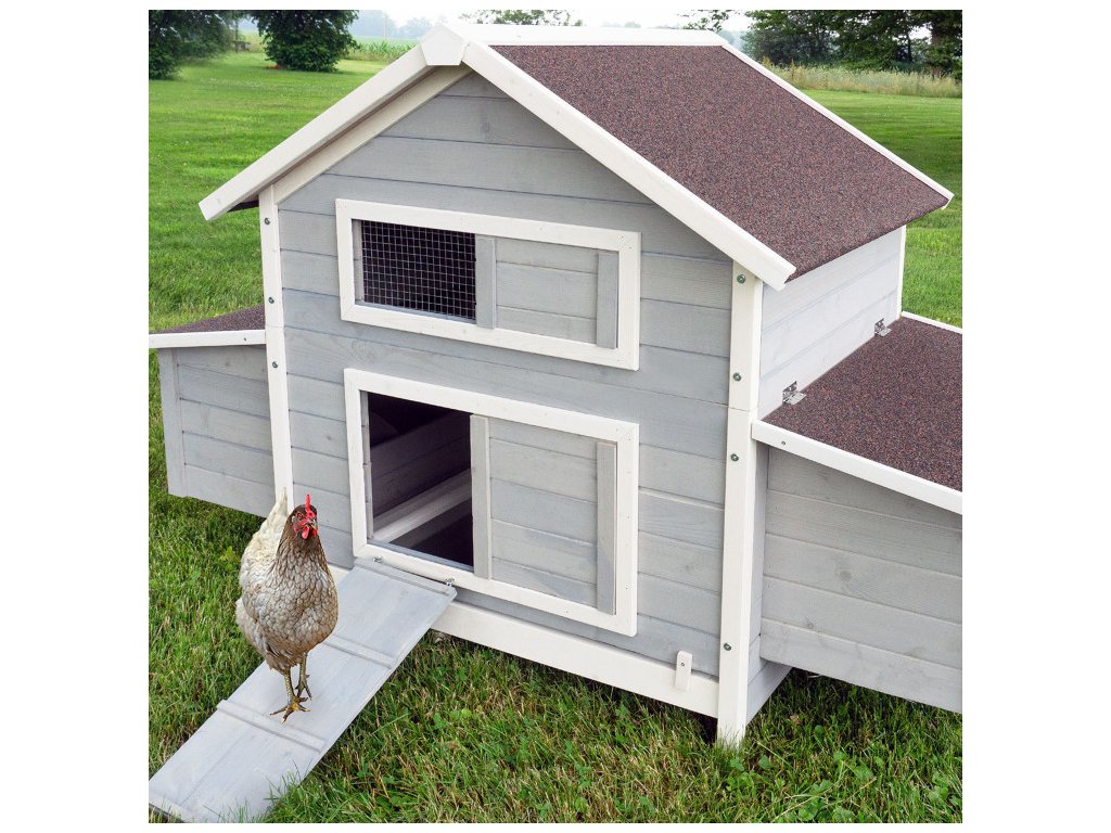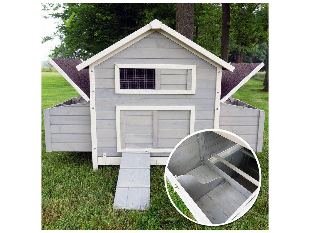 Kurník pro slepice je vybaven hřadami pro noční odpočinek slepic. Součástí kurníku jsou také čtyři vnější snášková hnízda, v kterých budou mít slepice dostatek prostoru a klidu pro snášení vajec. Získávání vajíček přitom bude velice jednoduché, jelikož k jejich vyzvednutí stačí pouze zvednout střechu snáškových hnízd. Zároveň nehrozí, že by do kurníku zateklo, protože střecha je vodotěsná. Posuvné dveře u vchodu lze otevírat a zavírat pomocí madla. Nad dvířky je okénko pro přívod čerstvého vzduchu.