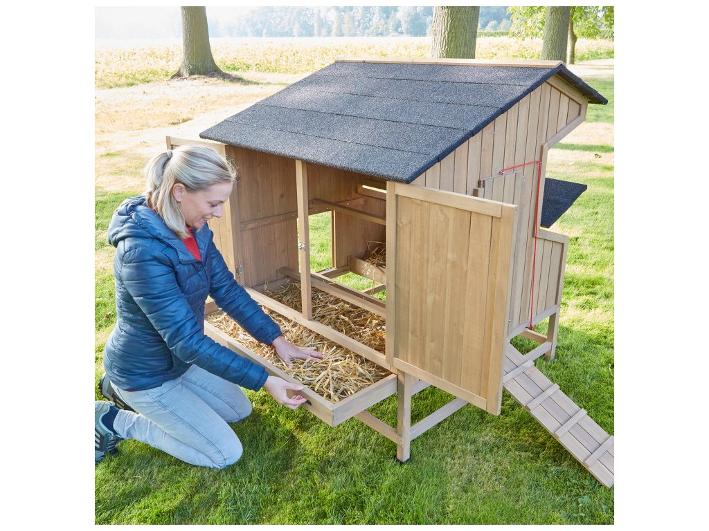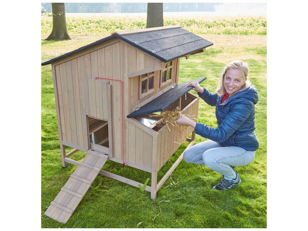 Kurník pro slepice je vybaven speciálními hřadami pro noční odpočinek slepic. Součástí kurníku je vnější hnízdící box se třemi snáškovými hnízdy, vytvořené s ohledem na dostatek místa a klidu pro snášení vajec. Získávání vajíček přitom bude velice jednoduché, neboť stačí otevřít střechu snáškových hnízd a pohodlně vajíčka vybrat. Střecha je navíc vodotěsná, čímž je zajištěno, že voda nepronikne dovnitř kurníku ani do snáškových hnízd. Ventilační okno na zadní straně poskytuje dostatečný přísun čerstvého vzduchu, což zajišťuje optimální podmínky pro vaši drůbež.