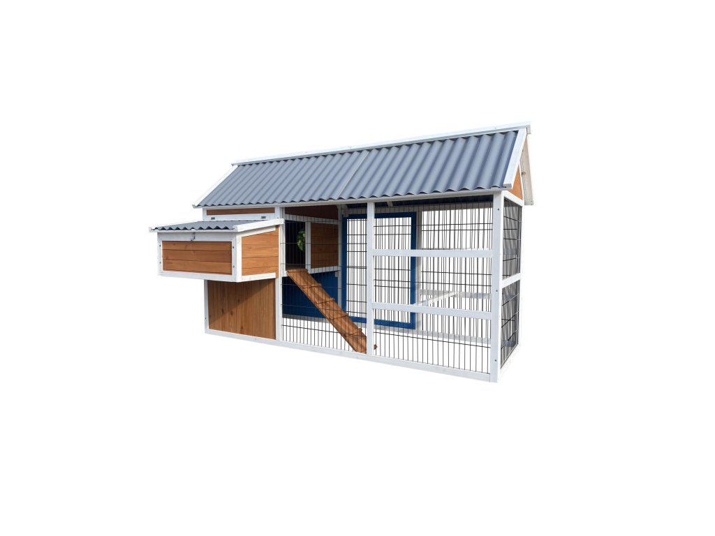 Součástí kurníku jsou dvě vnější snášková hnízda, v kterých budou mít slepice dostatek prostoru a klidu pro snášení vajec. Získávání vajíček přitom bude velice jednoduché, jelikož k jejich vyzvednutí stačí pouze zvednout střechu snáškových hnízd. Ventilační okno na bocích zajistí optimální proudění vzduchu pro vaši drůbež, poskytující jim čerstvý vzduch. Přístup do kurníku je zajištěn žebříkem, který je bezpečný a pohodlný pro vaše ptactvo. Střecha je vyrobena z kvalitního PVC materiálu, což zajišťuje odolnost vůči povětrnostním vlivům a dlouhou životnost. Součástí kurníku jsou hřady pro pohodlný pobyt slepic a pletivo, které odděluje výběh od vnitřních prostor.