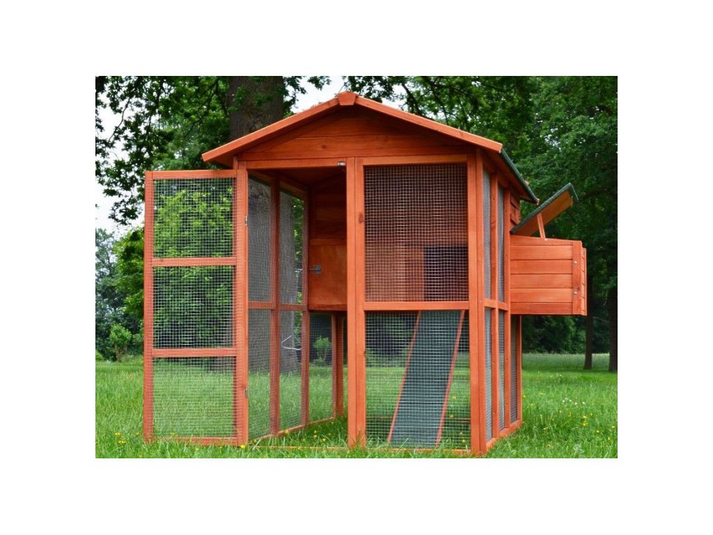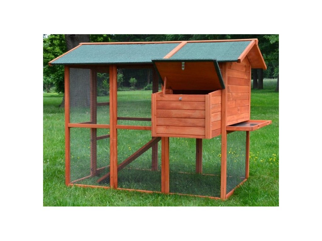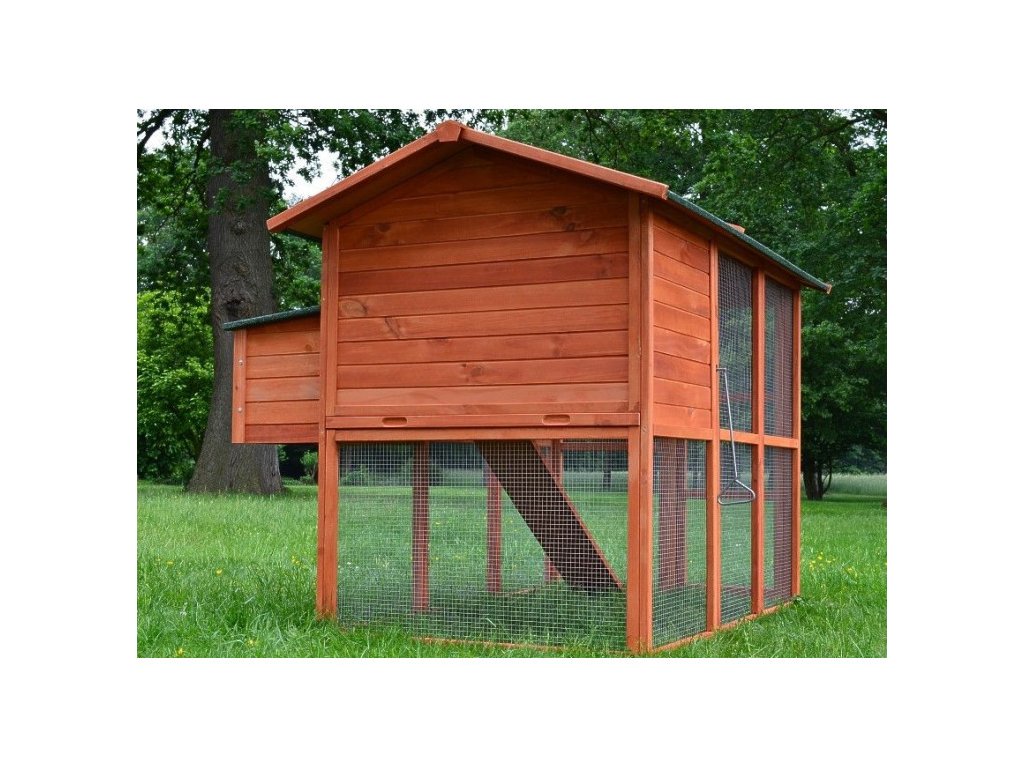 Maxi kurník až pro 8 slepic (dle jejich velikosti) obsahuje dvojhnízdo - dvě snášková hnízda, v kterých budou mít slepice dostatek prostoru a klidu pro snášení vajec. Získávání vajíček přitom bude velice jednoduché, jelikož k jejich vyzvednutí stačí pouze odklopit dvířka snáškových hnízd z boku kurníku. Součástí kurníku jsou hřady pro pohodlný pobyt slepic. Na obytnou část navazuje velký výběh. Přístup do kurníku je zajištěn protiskluzovou rampou. Kurník je velmi prostorný. Výběh oddělují od vnitřních prostor posuvná dvířka s madlem pro otevírání zvenku bez otevírání kurníku. Ventilační okno na bocích zajistí optimální proudění vzduchu pro vaši drůbež, poskytující jim čerstvý vzduch.