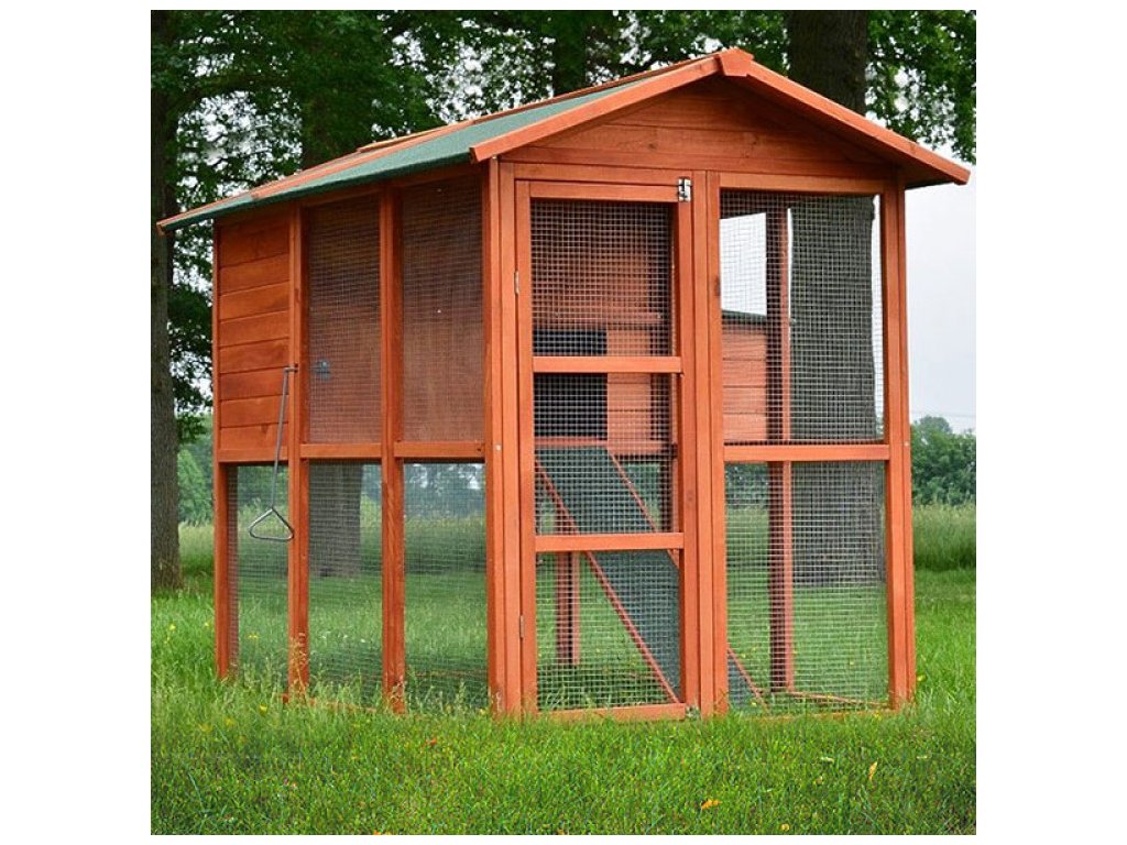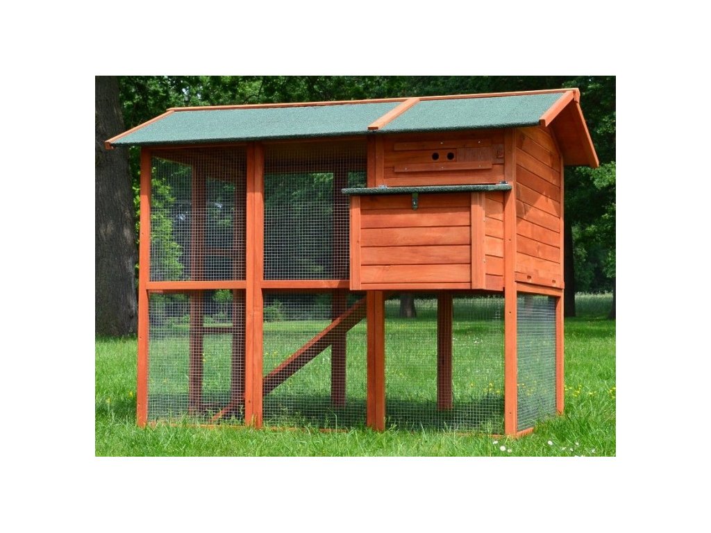 Kurník vyrobený ze smrkového dřeva má hmotnost cca 41 kg a zajišťuje tak velkou stabilitu. Kurník není zateplený. Pro ochranu proti slunečnímu záření je střecha kurníku pokryta asfaltovou krytinou. Přesto doporučujeme kurník umístit pod přístřešek, aby byl chráněn před deštěm, sněhem a extrémním slunečním záření. Dřevěný kurník je povrchově ošetřen základním ochranným nátěrem. Pro delší životnost je třeba, jako u každého dřeva, ochranný nátěr obnovovat.