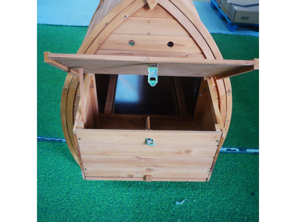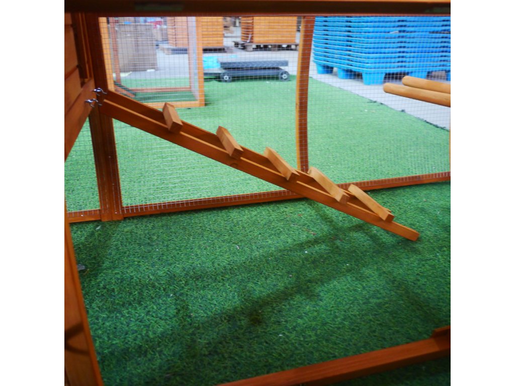 - Přístup: Dvířka do vnitřní části kurníku lze pohodlně otevřít zvenčí pomocí madla, což usnadňuje přístup a obsluhu