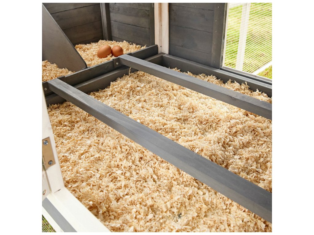 Kurník pro slepice je vybaven hřadami pro noční odpočinek slepic. Součástí kurníku jsou také dvě vnější snášková hnízda, v kterých budou mít slepice dostatek prostoru a klidu pro snášení vajec. Získávání vajíček přitom bude velice jednoduché, jelikož k jejich vyzvednutí stačí pouze zvednout střechu snáškových hnízd. Zároveň nehrozí, že by do kurníku zateklo, protože střecha je vodotěsná.