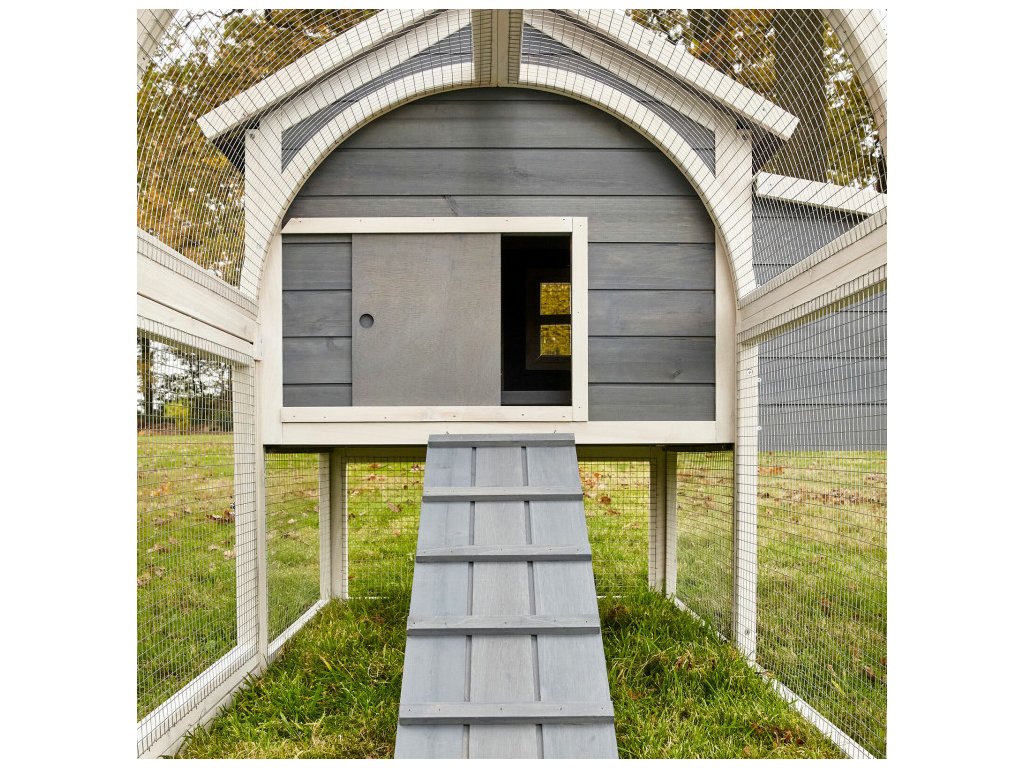 Pro snadný přístup je kurník vybaven hned dvěma dvířky. Jedny dvířka jsou umístěna z přední strany kurníku, druhý vstup je z boční strany, otevřený, s protiskluzní rampou. Samotný výběh je vybaven dvířky pro Váš snadný přístup pro výměnu krmení a vody. Čištění kurníku zvládnete hravě během chvilky díky výsuvnému trusníku. Také čištění snáškového hnízda nebude problém, díky výklopné stříšce.