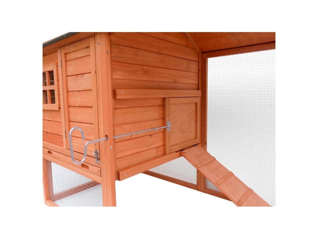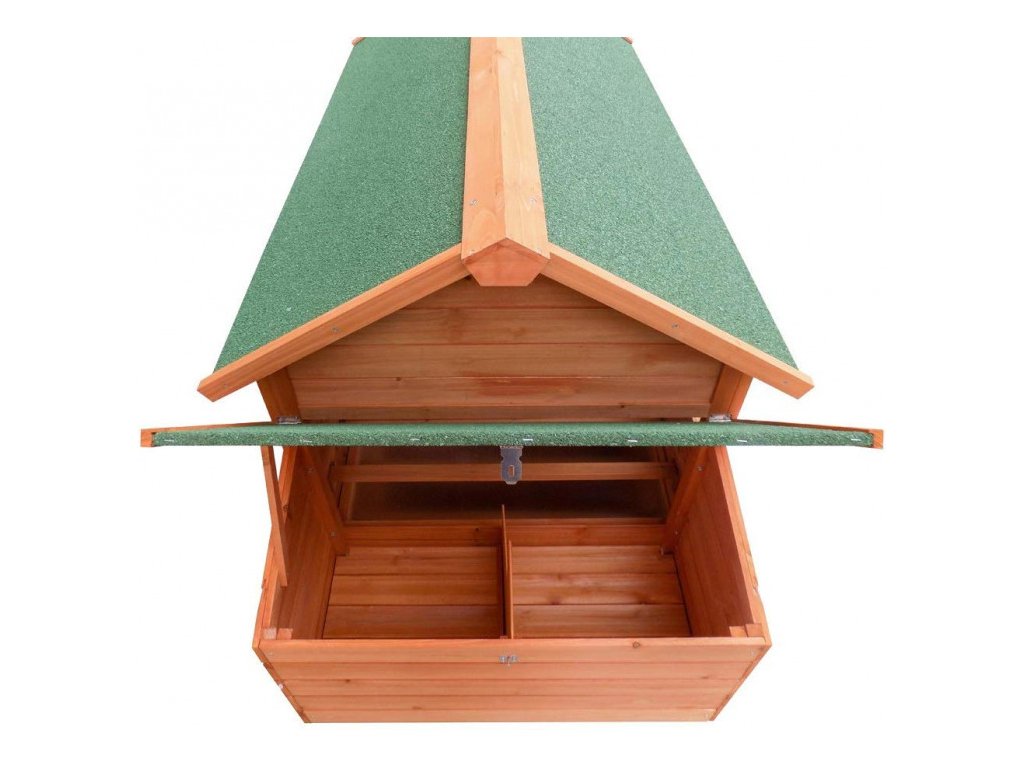 Kurník pro slepice je vybaven hřadami pro noční odpočinek slepic. Součástí kurníku jsou také dvě vnější snášková hnízda, v kterých budou mít slepice dostatek prostoru a klidu pro snášení vajec. Získávání vajíček přitom bude velice jednoduché, jelikož k jejich vyzvednutí stačí pouze zvednout střechu snáškových hnízd.Střechu hnízda lze zajistit otevřenou pomocí dřevěné tyčky. Zároveň nehrozí, že by do kurníku zateklo, protože střecha je vodotěsná.
