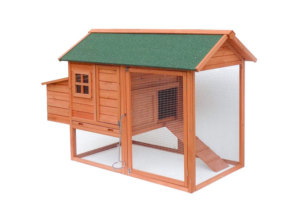 Kurník vyrobený ze smrkového dřeva má hmotnost cca 45 kg, a tak zajišťuje velkou stabilitu. Kurník není zateplený. Pro ochranu proti slunečnímu záření je střecha kurníku i snáškových hnízd pokryta asfaltovou krytinou. Přesto doporučujeme kurník umístit pod přístřešek, aby byl chráněn před deštěm, sněhem a extrémním slunečním záření. Dřevěný kurník je povrchově ošetřen základním ochranným nátěrem. Pro delší životnost je třeba, jako u každého dřeva, ochranný nátěr obnovovat.