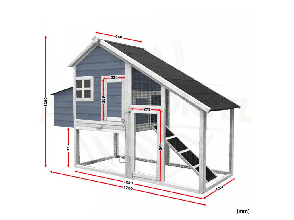 Kurník pro slepice MOMBASA od výrobce AgroFortel s rozměry 171 x 66 x 120 cm je ideální pro 5 slepic. Tento praktický vyvýšený kurník s výběhem poskytne slepicím skvělé zázemí ve dne i v noci. Kurník je vybavený bidýlky pro noční odpočinek a dvěma vnějšími vodotěsnými snáškovými hnízdy pro pohodlnou snůšku vajec. Slepice mají do kurníku pohodlný přístup přes menší výklopná dvířka a uzavíratelnou vstupní rampu. Odolné smrkové dřevo zajišťuje stabilitu a pevnost celého kurníku. Střecha je pokryta asfaltovou krytinou a je vodotěsná. Kurník je vybaven větracím okénkem. Při čištění kurníku jistě oceníte odnímatelné dno. Venkovní výběh je po celém obvodu opatřen pozinkovaným ocelovým drátem.