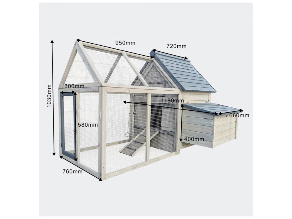 Kurník pro slepice je vybaven hřadami pro noční odpočinek slepic. Součástí kurníku jsou také dvě vnější snášková hnízda, v kterých budou mít slepice dostatek prostoru a klidu pro snášení vajec. Získávání vajíček přitom bude velice jednoduché, jelikož k jejich vyzvednutí stačí pouze zvednout střechu snáškových hnízd. Posuvné dveře u vchodu lze otevírat a zavírat pomocí madla. Nad dvířky je okénko pro přívod čerstvého vzduchu.