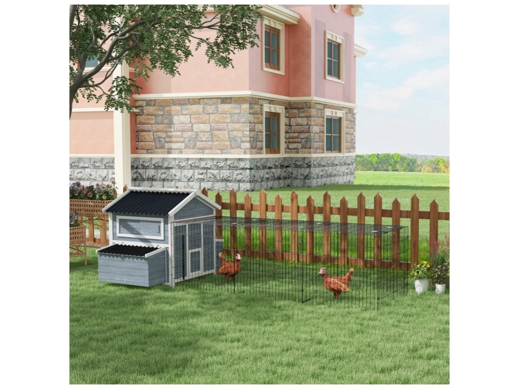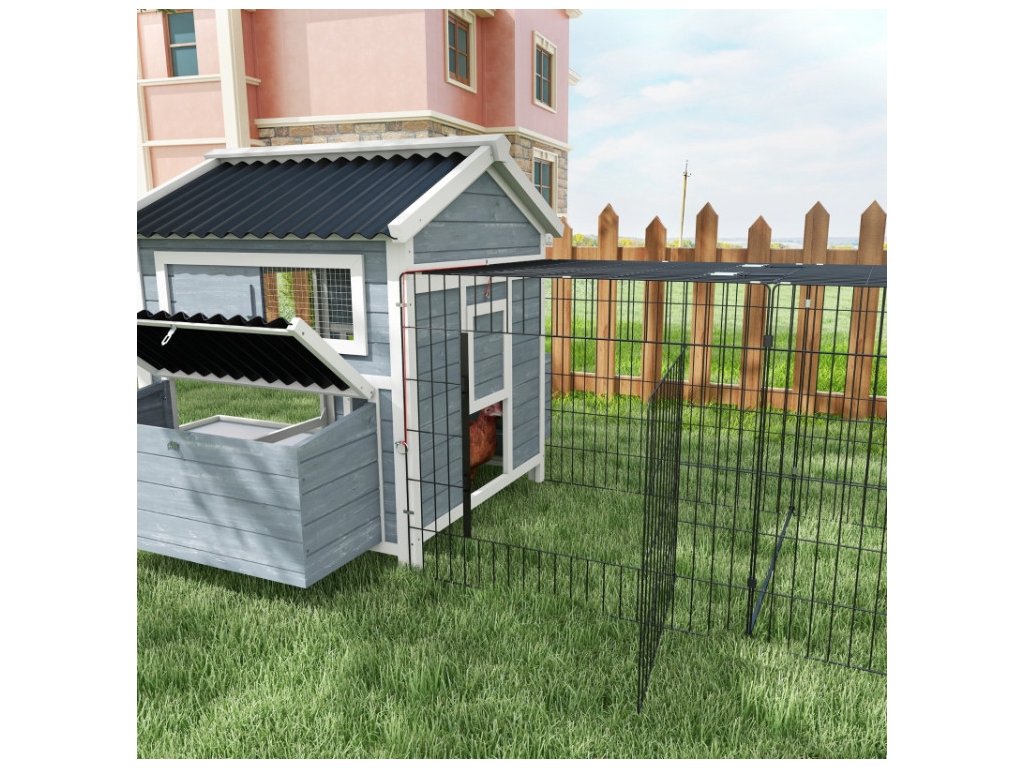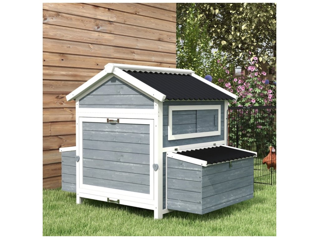 Vhodný do každého počasí: Kurník je vybaven plastovou střešní krytinou a masivními stěnami z jedlového dřeva opatřenými ochranným nátěrem, které poskytují spolehlivou ochranu před deštěm a chladem. Střecha také poskytuje stín během horkých dnů, takže se vaše slepičky budou cítit pohodlně za každého počasí.