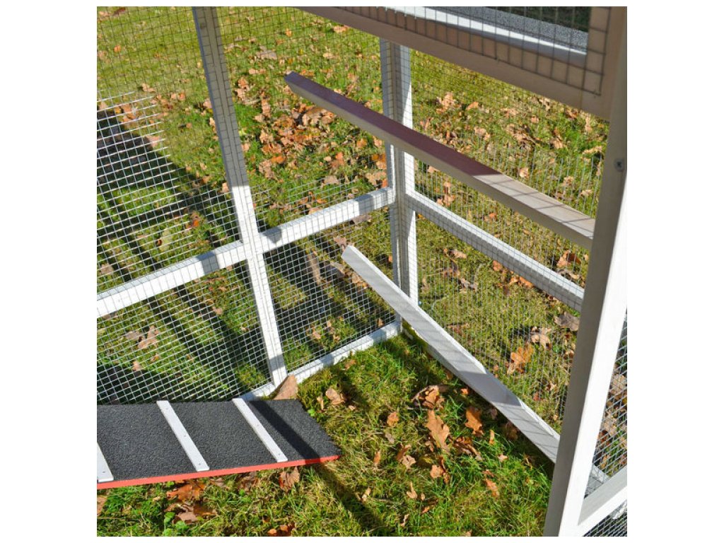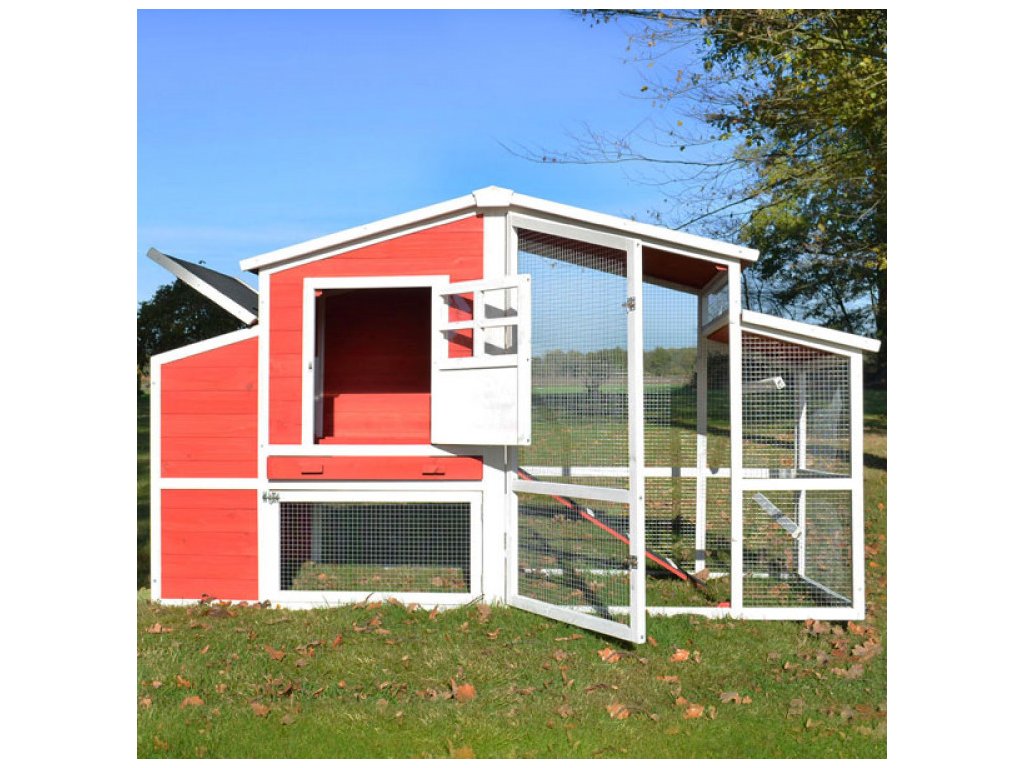 Kurník je velmi prostorný, a prostřednictvím posuvných dvířek s madlem na