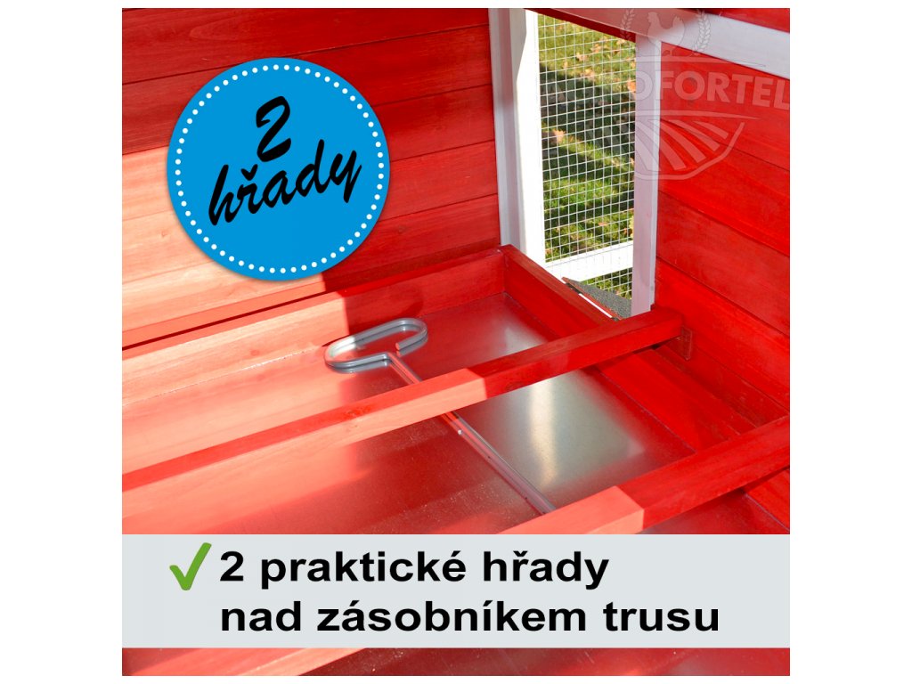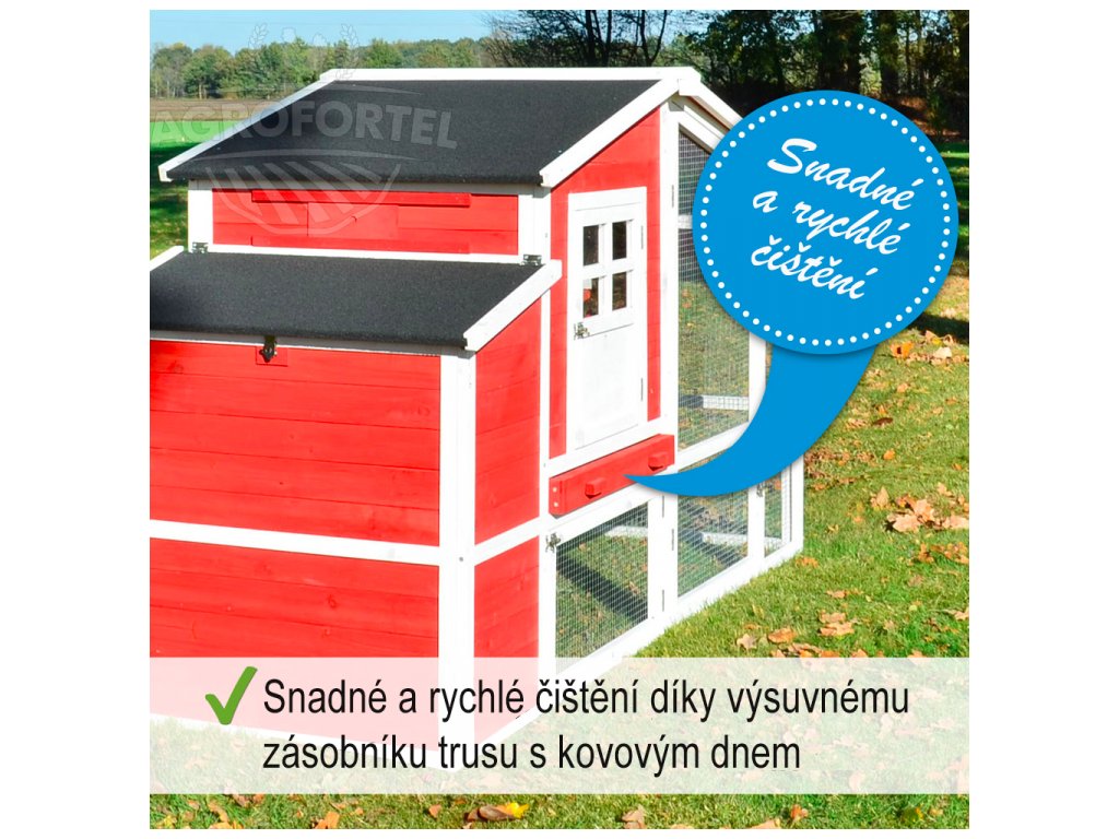 Kurník je vybaven zásuvkou pro snadné vyprazdňování trusu.