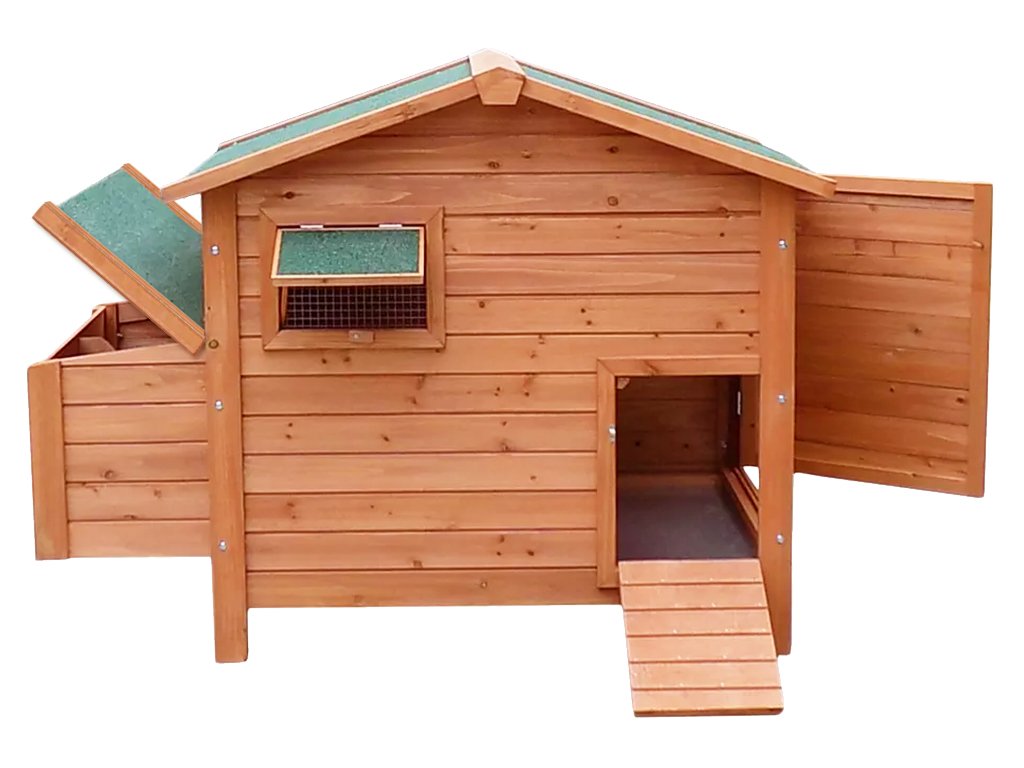 Kurník pro slepice je vybaven hřadami pro noční odpočinek slepic. Součástí kurníku jsou také dvě vnější kukaně, v kterých budou mít slepice dostatek prostoru a klidu pro snášení vajec. Získávání vajíček přitom je velice jednoduché, k jejich vyzvednutí stačí pouze zvednout střechu snáškových hnízd. Zároveň nehrozí, že by do kurníku zateklo, protože střecha vodotěsná. Cirkulaci vzduchu v kurníku zajišťuje přední vyklápěcí okénko.
