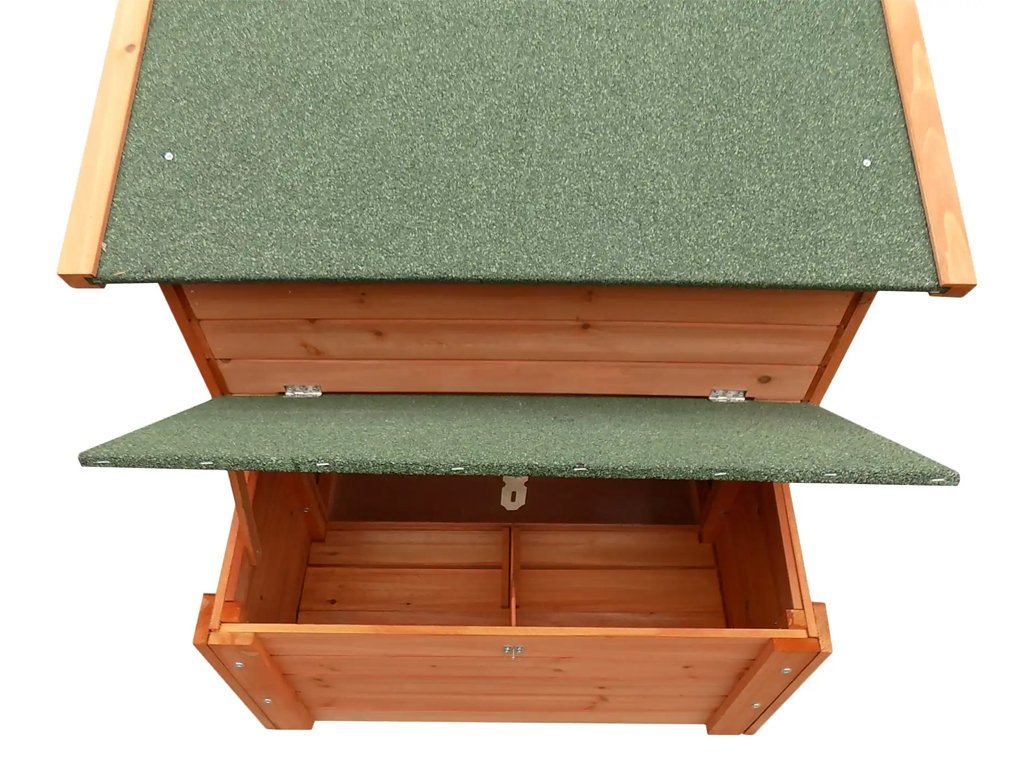 Pro snadný přístup je kurník vybaven hned dvěma dvířky. Jedny dvířka jsou umístěna z přední strany kurníku, druhá větší z boční strany a obě jsou opatřena zámečky, aby je nemohl žádný predátor otevřít. Větší dvířka slouží pro jednoduchou výměnu vody, krmení a dobrou dostupnost do kurníku při čištění. Druhá menší výklopná dvířka umožní slepicím snadný přístup do kurníku a ven na zahradu nebo do výběhu. Čištění kurníku zvládnete hravě během chvilky skrz otevřené boční dvířka. Také čištění snáškového hnízda nebude problém, díky výklopné stříšce.