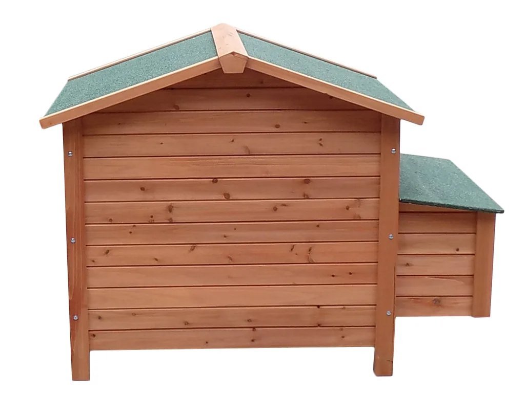 Kurník vyrobený z borovicového dřeva má hmotnost cca 40 kg, a tak zajišťuje velkou stabilitu. Pro zajištění odvětrávání podlahy, je kurník umístěn na čtyřech vyvýšených nožičkách. Kurník není zateplený. Pro ochranu proti slunečnímu záření je střecha kurníku i snáškových hnízd pokryta asfaltovou krytinou. Přesto doporučujeme kurník umístit pod přístřešek, aby byl chráněn před deštěm, sněhem a extrémním slunečním záření. Dřevěný kurník je povrchově ošetřen základním ochranným nátěrem. Pro delší životnost je třeba, jako u každého dřeva, ochranný nátěr obnovovat.