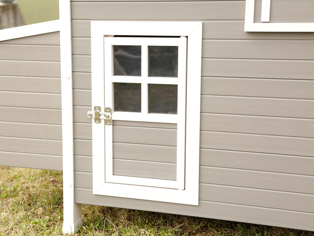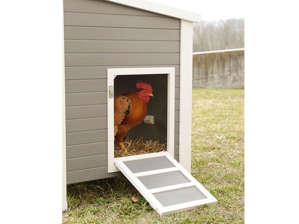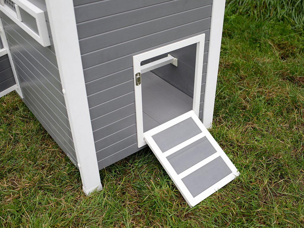 Pro snadný přístup je kurník vybaven dvěma dvířky. Jedna dvířka opatřená západkou jsou umístěna z přední strany kurníku a slouží pro jednoduchou výměnu vody, krmení a dobrou dostupnost do kurníku. Z boční strany má kurník pro slepice ještě výklopná dvířka, která slepicím umožní snadný výstup na zahradu nebo do výběhu. Tato dvířka se zavírají také na západku, aby je nemohl žádný predátor otevřít.