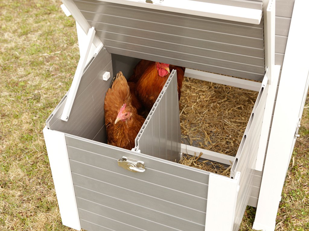 Kurník pro slepice je vybaven dvěma hřady pro noční odpočinek slepic. Součástí kurníku jsou také dvě vnější kukaně, v kterých budou mít slepice dostatek prostoru a klidu pro snášení vajec. Získávání vajíček přitom bude velice jednoduché, jelikož k jejich vyzvednutí stačí pouze zvednout střechu snáškových hnízd.