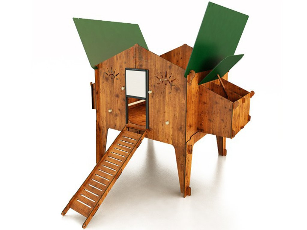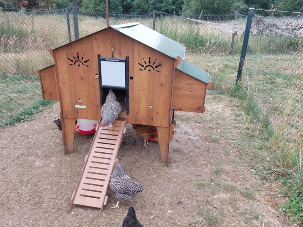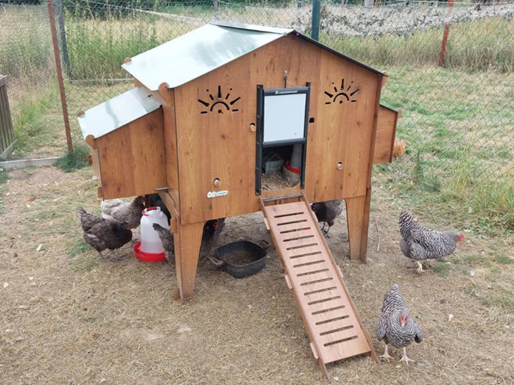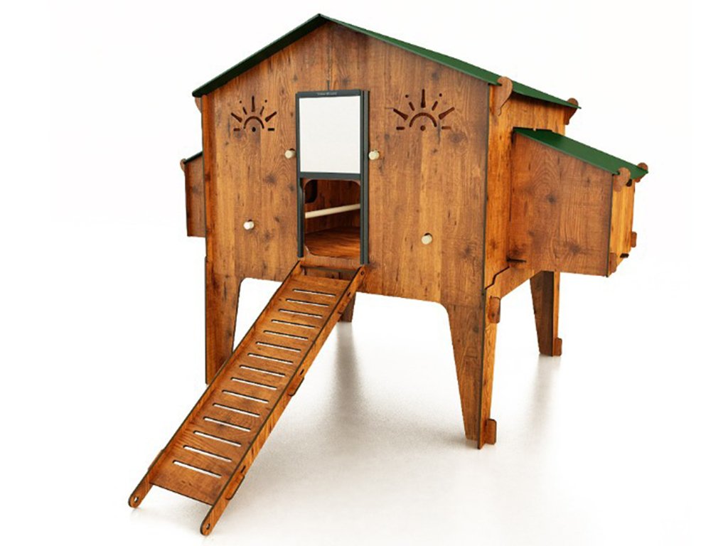 Kurník pro slepice je vybaven čtyřmi hřady pro noční odpočinek slepic. Součástí kurníku jsou také čtyři vnější kukaně, v kterých budou mít slepice dostatek prostoru a klidu pro snášení vajec. Získávání vajíček přitom bude velice jednoduché, jelikož k jejich vyzvednutí stačí pouze zvednout střechu snáškových hnízd. Díky tomu, že je kurník vyvýšen na nožkách 50 cm od země, tak poskytuje slepicím i během dne ochranu před sluncem či deštěm. Tento prostor pod kurníkem je ideální k umístění napáječek a krmítek. Do kurníku mají slepice během dne pohodlný přístup přes žebřík. Součástí balení jsou bezpečnostní dvířka značky Chicken Guard, na které můžete v případě zájmu snadno připojit automatické otevírání kurníku.