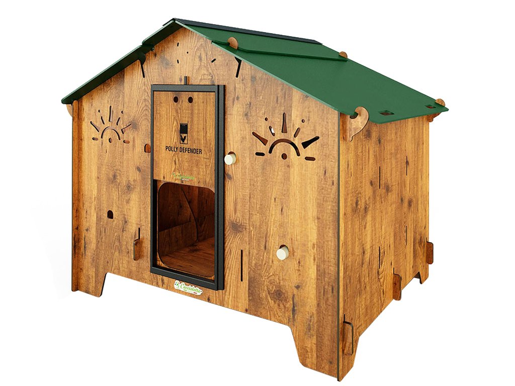 Kurník pro slepice je vybaven dvěma hřady pro noční odpočinek slepic. Součástí kurníku jsou také tři vnitřní hnízda, v kterých budou mít slepice dostatek prostoru a klidu pro snášení vajec. Získávání vajíček přitom bude velice jednoduché, jelikož k jejich vyzvednutí stačí pouze zvednout střechu. Součástí balení jsou bezpečnostní dvířka značky Polly Defender, na které můžete v případě zájmu snadno připojit automatické otevírání kurníku.