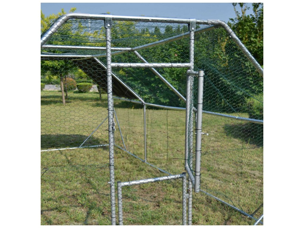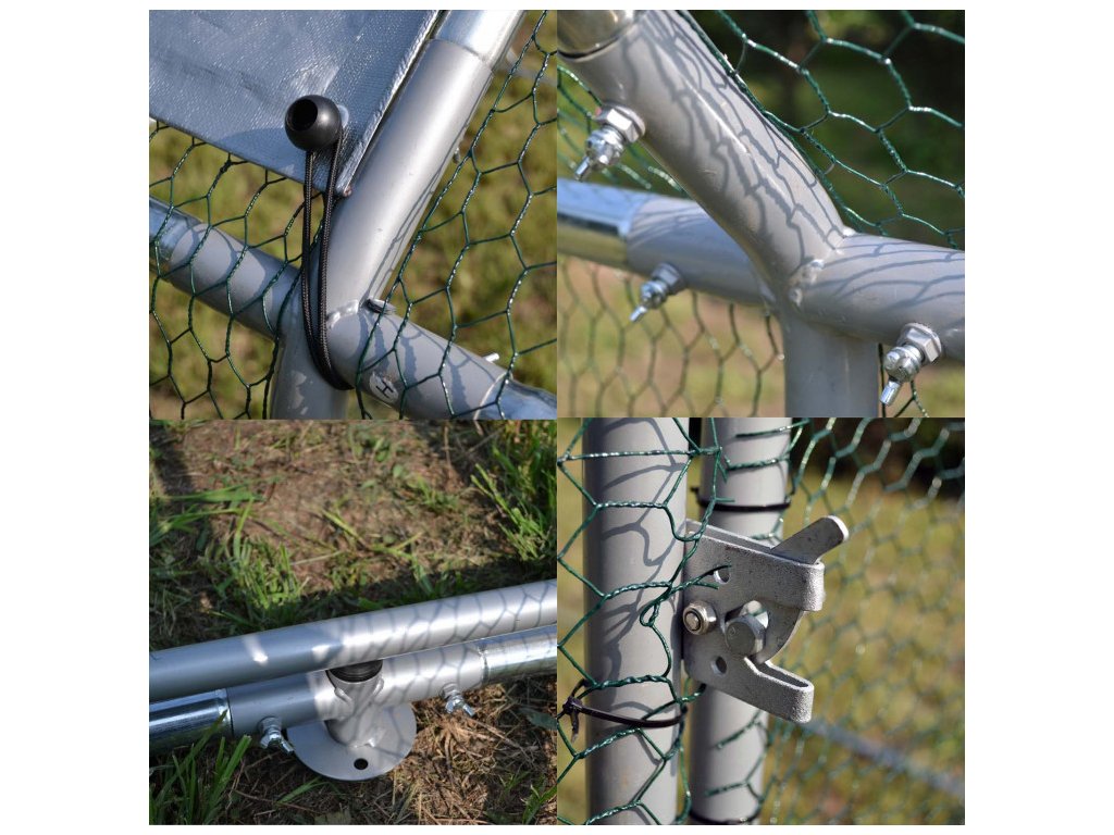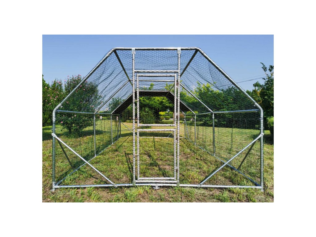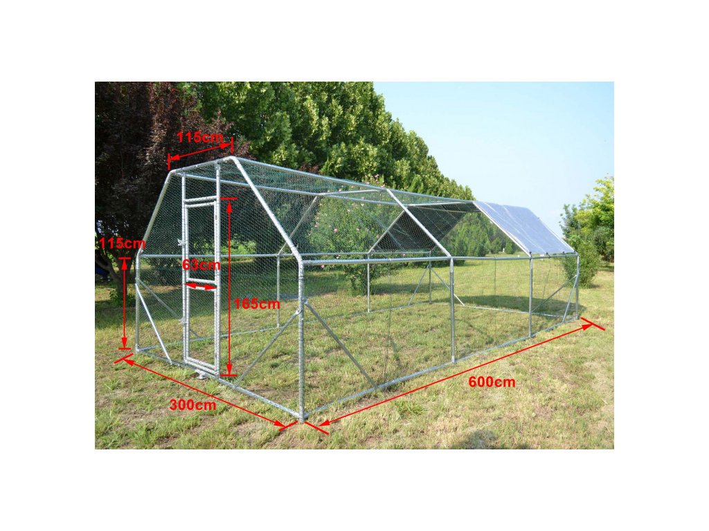 Venkovní klec s plachtou o rozměrech 6x3x2m je dokonalý domov pro vaši drůbež. Poskytuje bezpečnost, odolnost a ochranu. Je speciálně navržen pro všechny, kteří hledají kvalitní a praktické řešení a chtějí poskytnout své drůbeži co největší prostor. Tato klec je vyrobena z pozinkované oceli a poplastovaného tvrdého pletiva, což zaručuje vysokou odolnost a dlouhou životnost. Díky svým rozměrům poskytuje dostatek prostoru. V balení naleznete i plachtu, díky které můžeme vytvořit v části výběhu příjemný stín. Do klece lze i přímo umístit kurník. Dvířka jsou uzamykatelná a pletivo je s jemnými oky. Montáž je velmi jednoduchá.