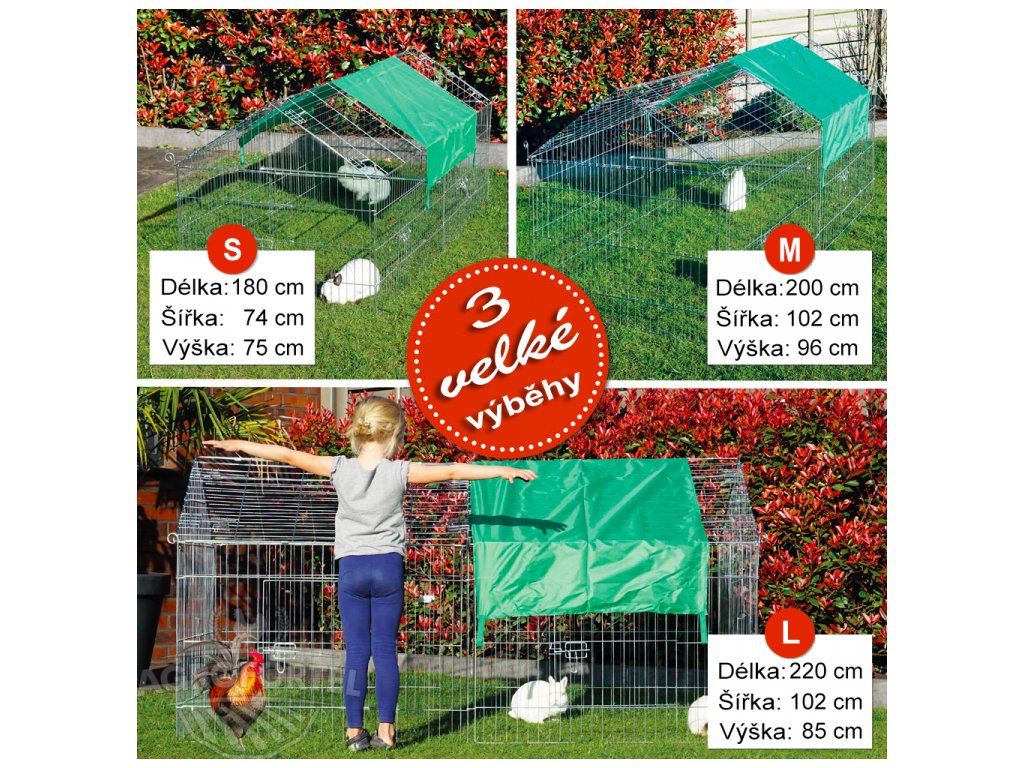 Venkovní výběh velikosti S pro drůbež a králíky má rozměry 185 x 75 x 75 cm a je vyrobený z oceli. Balení obsahuje také plachtu díky které můžete vytvořit v části oploceného výběhu příjemný stín. Velikost ok je malá a zabraňuje prostrčení hlavy a možnosti úrazu. Montáž je velmi jednoduchá. Velmi kvalitní a bytelné provedení.
