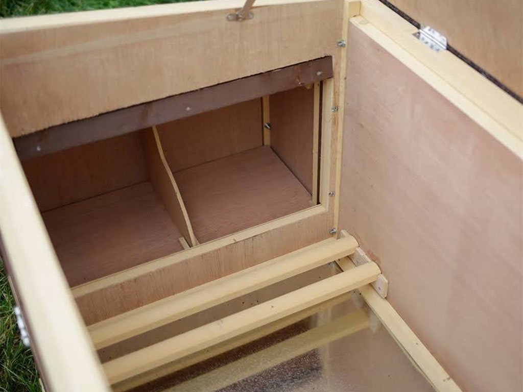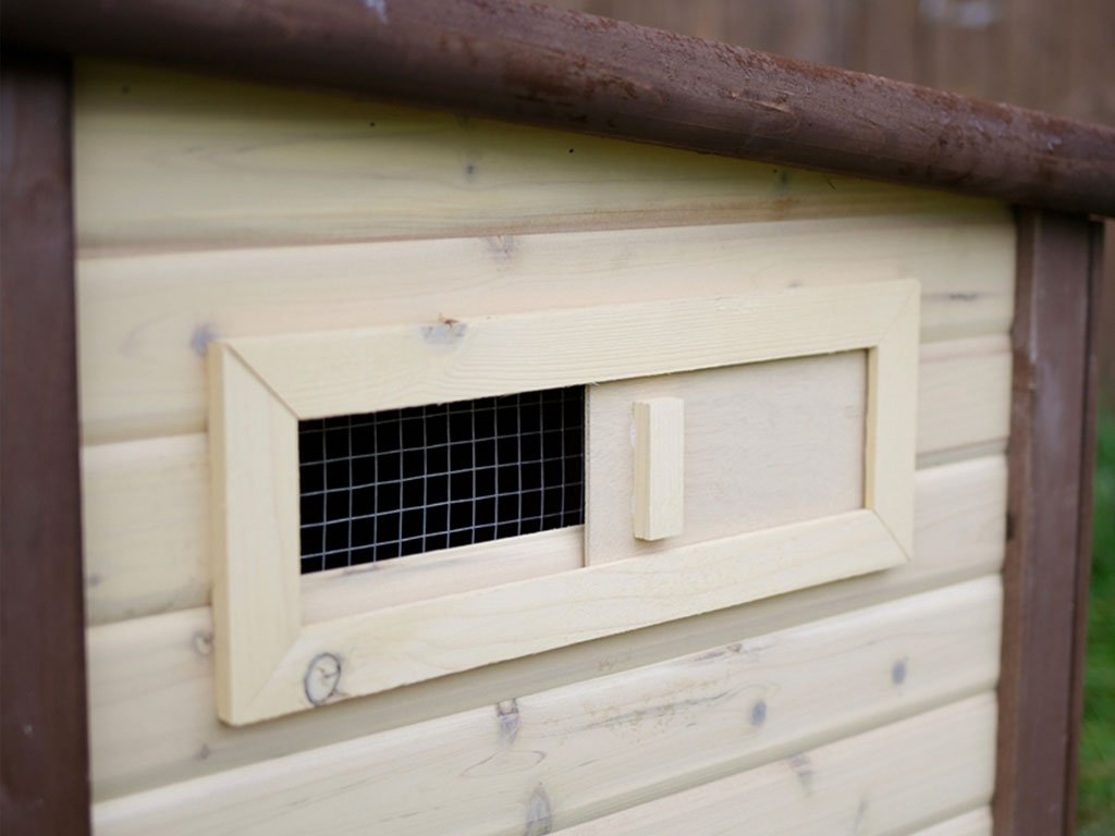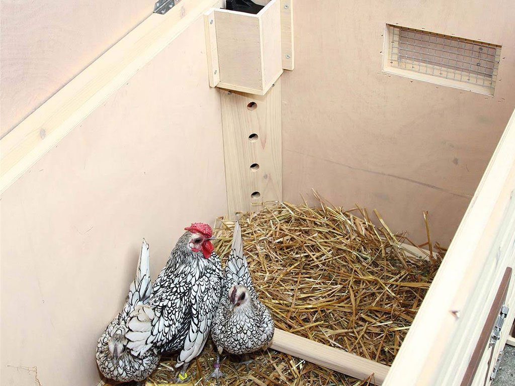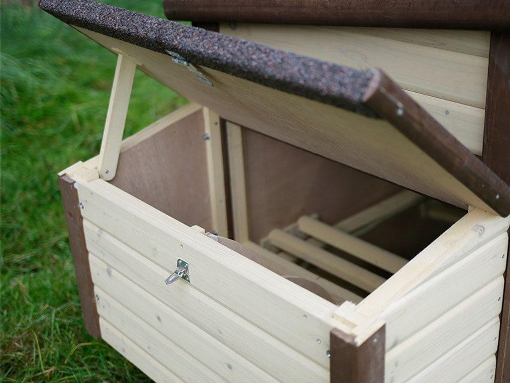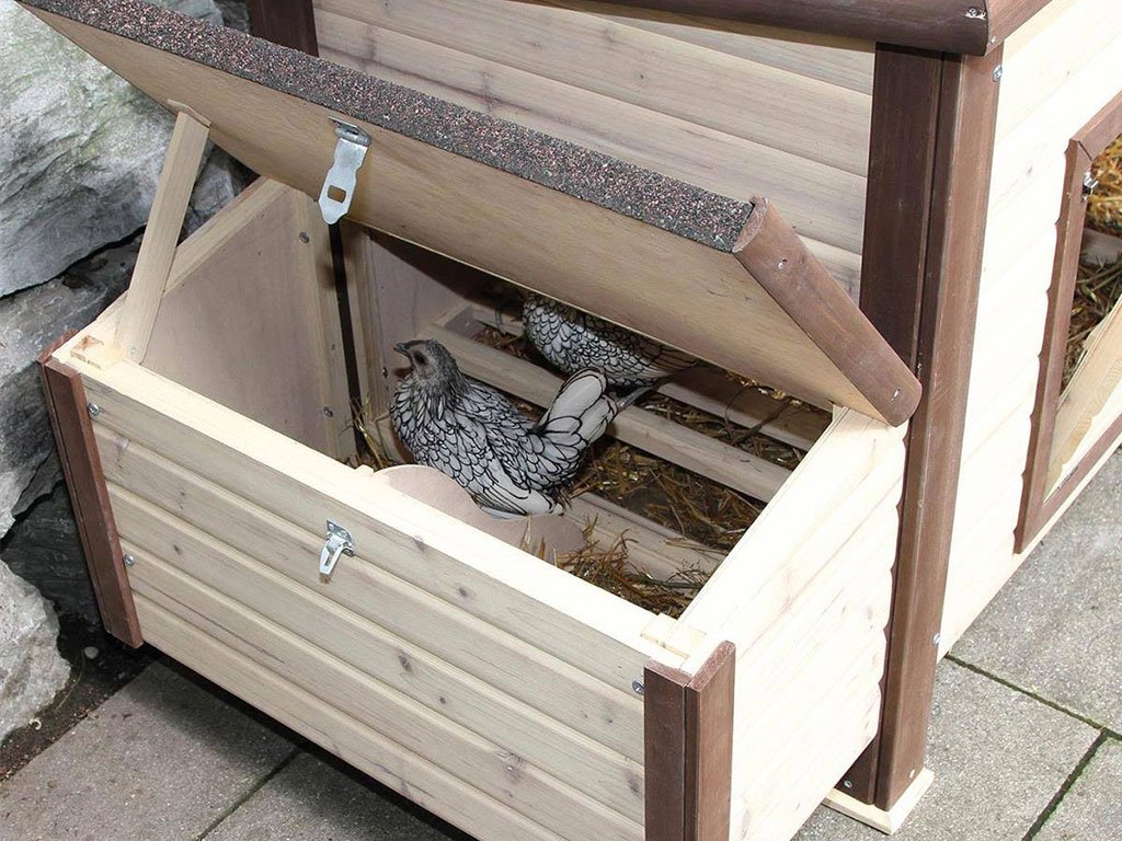 Kurník je vybaven vnějším snáškovým hnízdem se dvěma oddíly a výklopnou stříškou. Díky tomu posbíráte vajíčka pohodlně a rychle. Uvnitř kurníku se nacházejí tři hřady pro odpočinek.