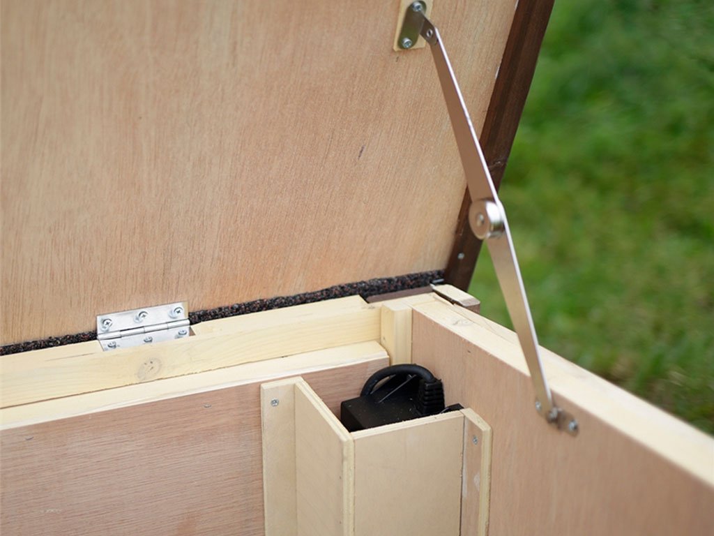 Čištění kurníku zvládnete hravě během chvilky. Střechu kurníku totiž můžete snadno otevřít a zajistit, aby zůstala otevřená, jak dlouho budete potřebovat. Kurník obsahuje také pozinkované dno, které se nejenom snadno čistí, ale není nasákavé a neváže pachy. Můžete jej proto snadno omýt vodou. Údržba topného tělesa probíhá po vypojení tělesa ze sítě a spočívá v odstraňovaní nečistot čistým suchým nebo jemně vlhkým hadříkem.