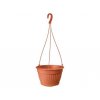 Plastový květináč s odtokovými otvory v barvě teracota.