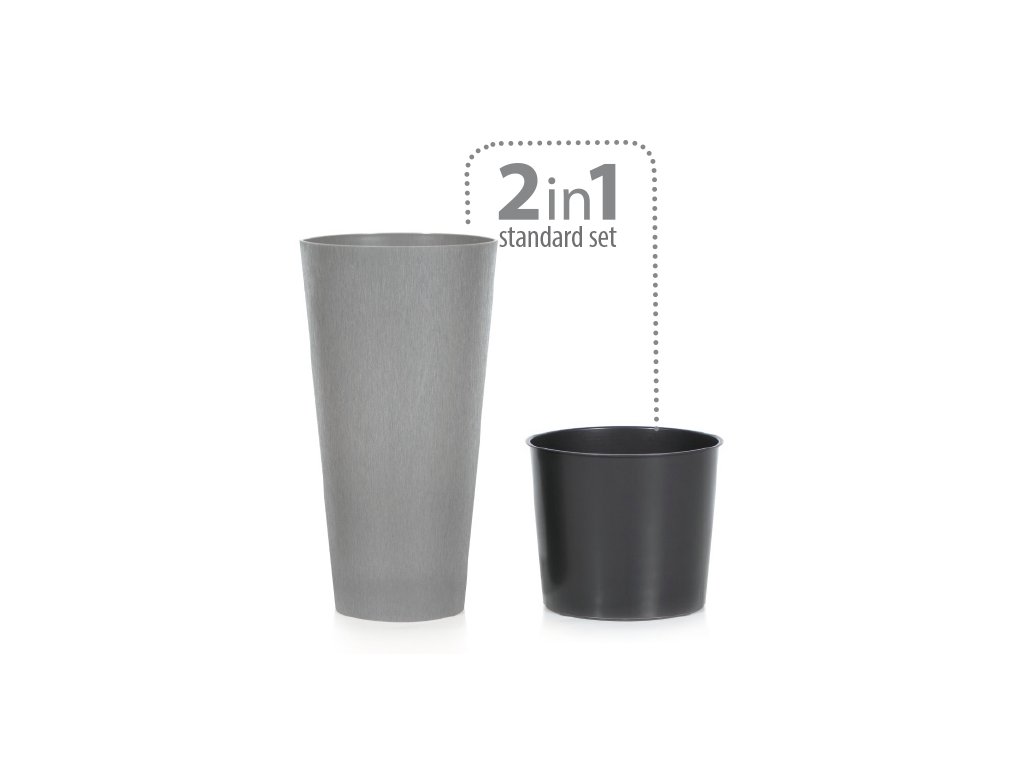 Květináč TUBUS je vyrobený z vysoce kvalitního omyvatelného materiálu s betonovým vzhledem. Materiál odolá mrazu i povětrnostním vlivům. Součástí květináče je plastová černá vložka, která slouží k výsadbě rostlin.