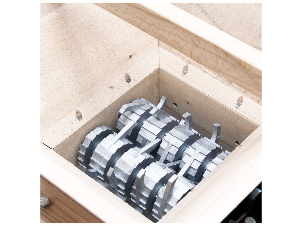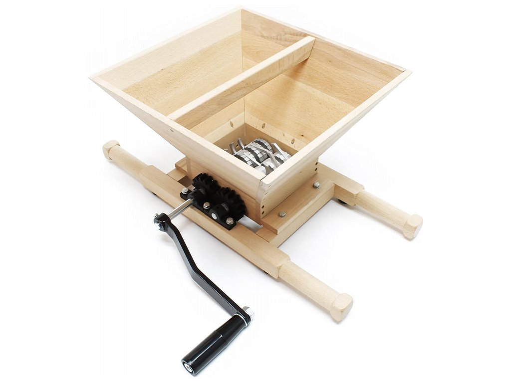 Tento kvalitní drtič ovoce je vyroben ze dřeva s nerezovým vnitřkem.