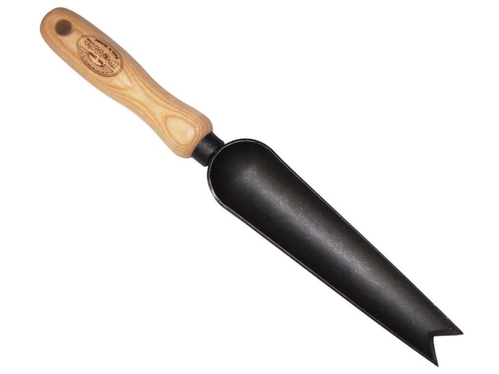 Kovaná lopatka DeWit s úzkou čepelí. Je ukončená dovnitř zkosenými hranami a díky tomu je velmi ostrá. Dokáže jednoduše vytvořit úzké díry. Využijete ji nejen při sázení, ale hlavně při vypichování plevele.