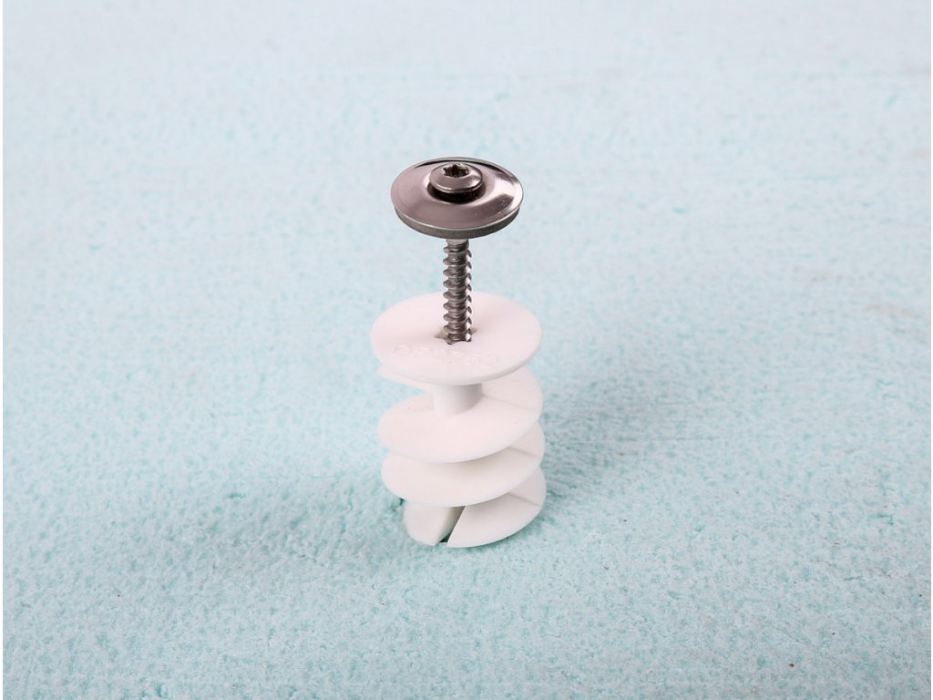 Montážní sada pro kotvení lišt k nopovým foliím a dalších drobných, lehkých předmětů do polystyrenu. Obsahuje hmoždinku a vrut v barvách nerez, RAL9005, RAL7016. Je možné šroubovat do omítnutého i neomítnutého polystyrenu. Balení po 10 ks. Rozměr vrutu 4,5 x 45 mm nerez, 4,5 x 35 mm lakovaná verze.