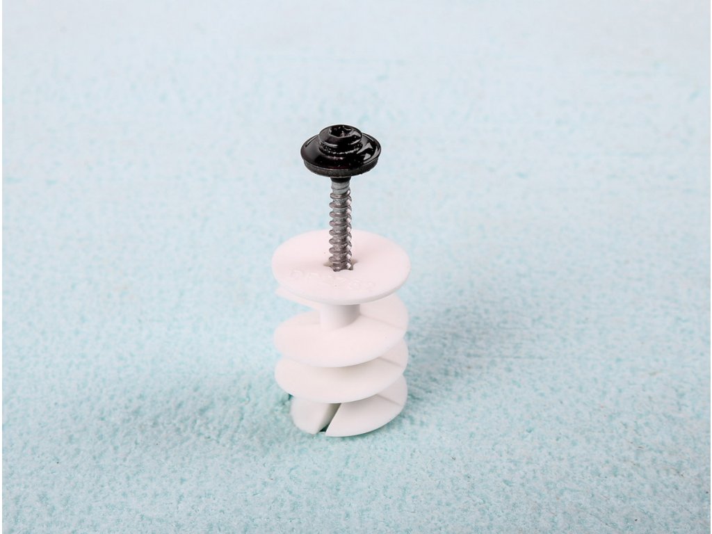 Montážní sada pro kotvení lišt k nopovým foliím a dalších drobných, lehkých předmětů do polystyrenu. Obsahuje hmoždinku a vrut v barvách nerez, RAL9005, RAL7016. Je možné šroubovat do omítnutého i neomítnutého polystyrenu. Balení po 10 ks. Rozměr vrutu 4,5 x 45 mm nerez, 4,5 x 35 mm lakovaná verze.