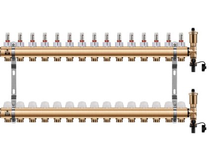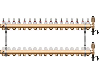 Mosazné podlahové rozdělovače slouží k distribuci teplé vody v podlahových topných systémech, dostupné s 2 až 18 okruhy. Každý rozdělovač je pečlivě testován tlakovou zkouškou, což zajišťuje dokonalou těsnost. Nabízíme i nerezové podlahové rozdělovače a radiátorové rozdělovače.
